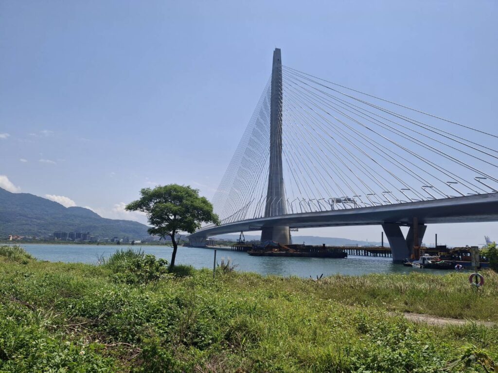 最令人稱道的工藝細節,莫過於橋面上 126 支量身定製的波浪燈柱。它們正如同一群姿態各異的舞者,沿著橋面緩緩鋪展。每一支燈柱的傾角與弧度都經過精密計算,在夕陽餘暉下,這些線條與遠方的觀音山交織,呈現出一種「動靜結合」的禪意美學。這不僅是工程的突破,更是對台灣現代舞文化的最高致敬。